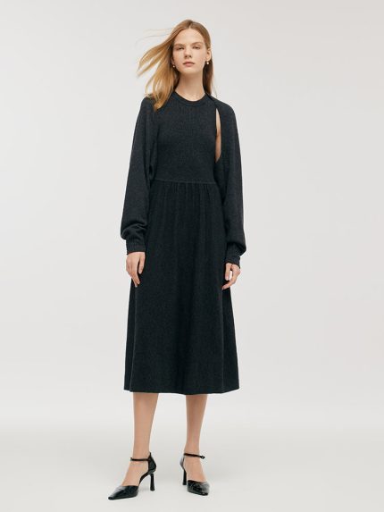 Camellia Printed Spaghetti Strap Dress And Knitted Cardigan Two-Piece Set