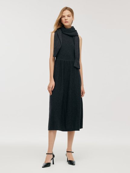 Bowknot Printed Spaghetti Strap Maxi Dress And Knitted Cardigan Two-Piece Set With Scrunchie