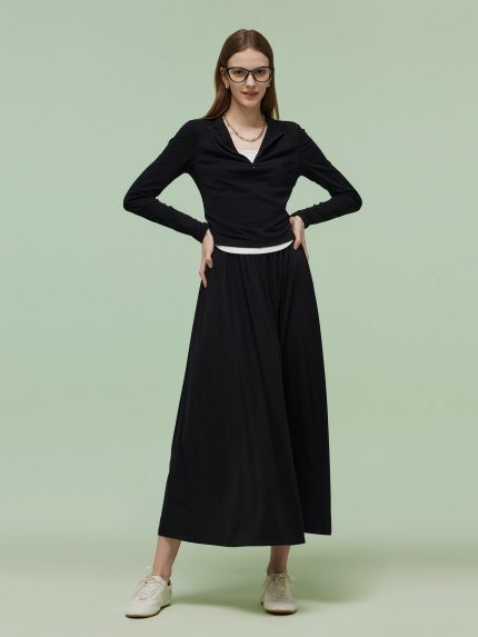 Denim V-Neck Top And Half Skirt Two-Piece Set