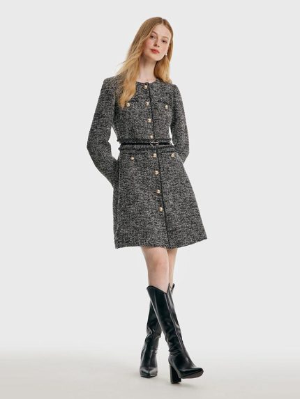Tencel Wool Cheongsam Button Gathered Waist Women Qipao Dress