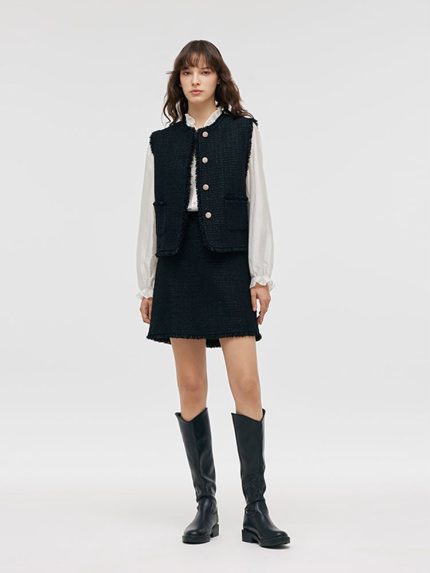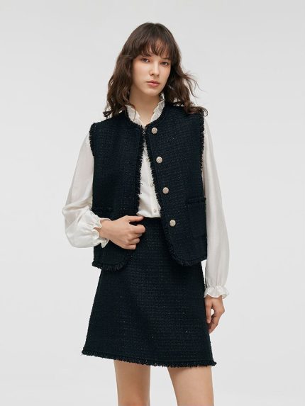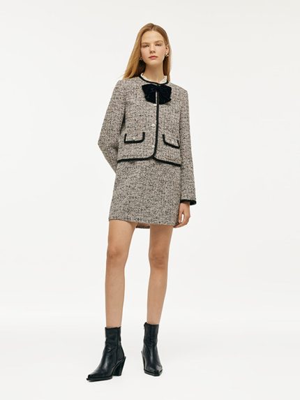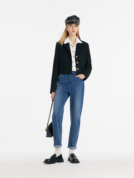 Vintage Single-Breasted V-Neck Women Crop Jacket