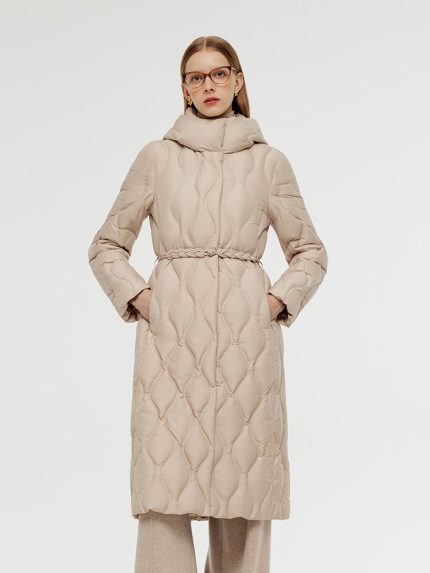 Gathered Waist Hooded Long Goose Down Coat