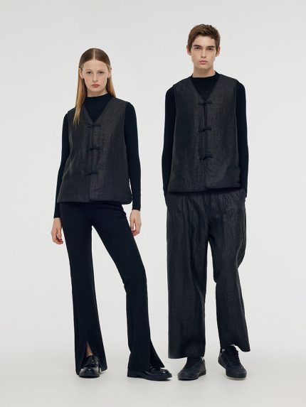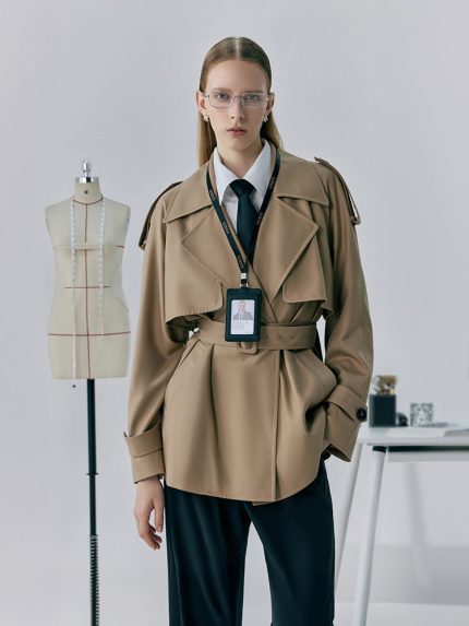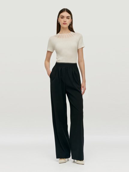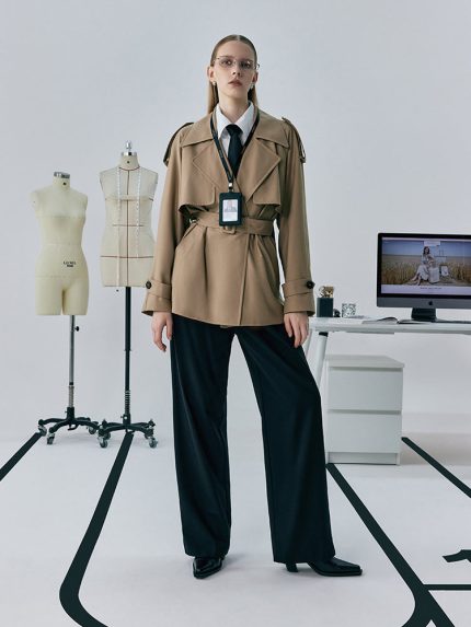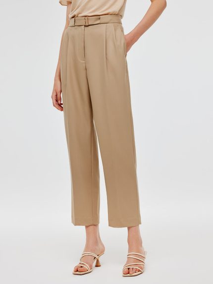 Worsted Wool Women Wide Leg Pants With Leather Belt