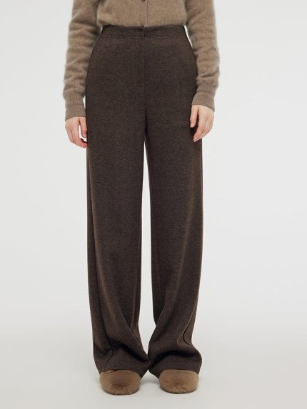 Worsted Wool Women Wide Leg Pants With Leather Belt
