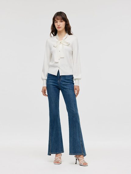 Tencel Wool Bow Tie Neck Women Cardigan