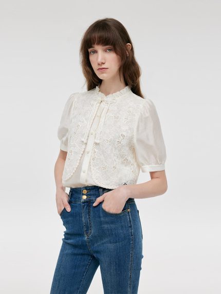 New Chinese-Style Lace Sequins Patchwork Women Blouse