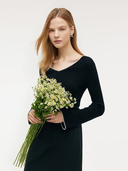 Pearl Round Neck Women Sweater
