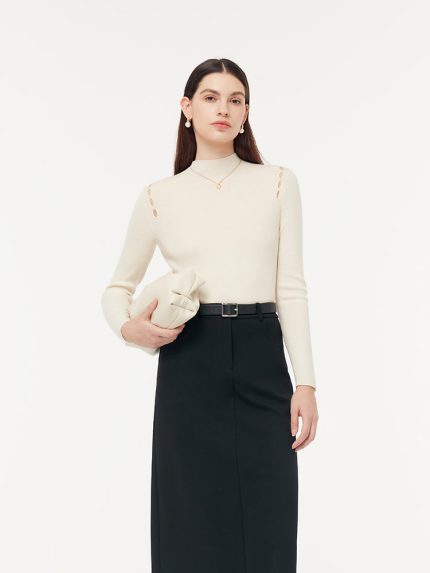 Machine Washable Wool Turtleneck Women Knit Top