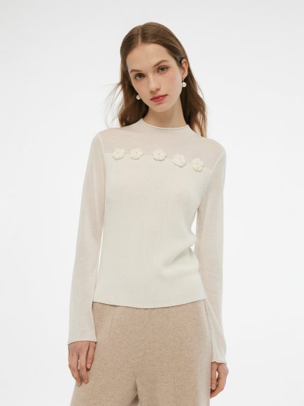 Tencel Wool Blend Women Flower Knit Top