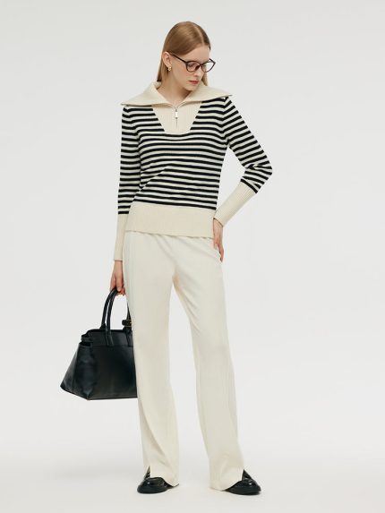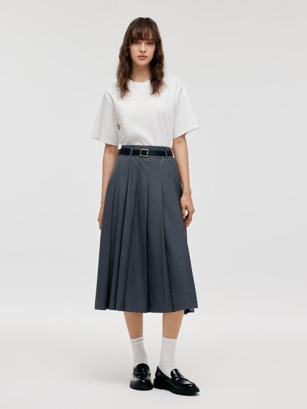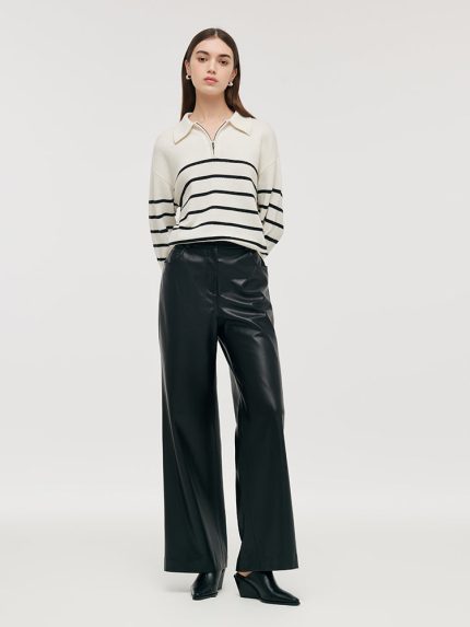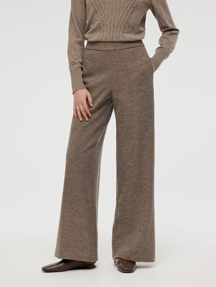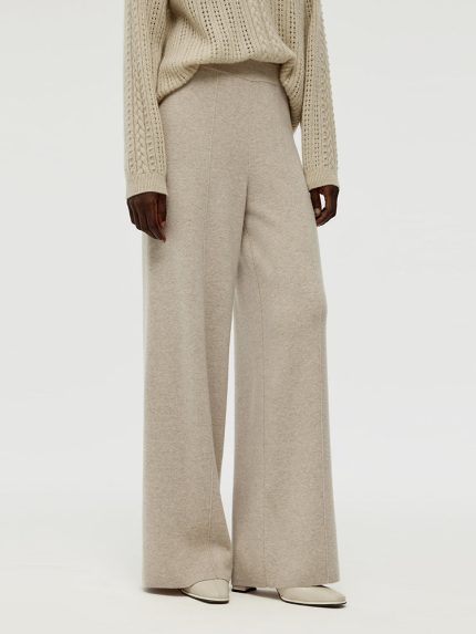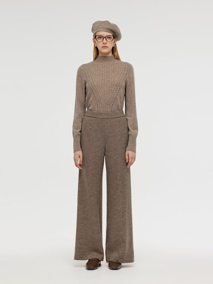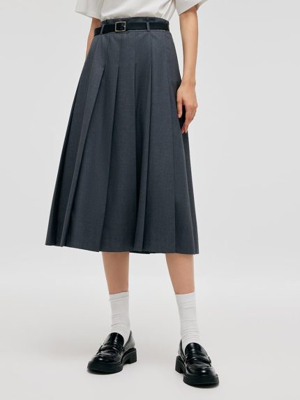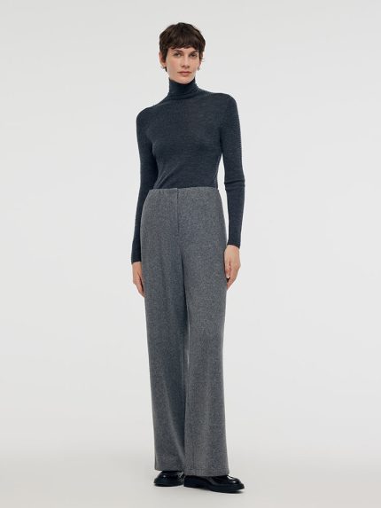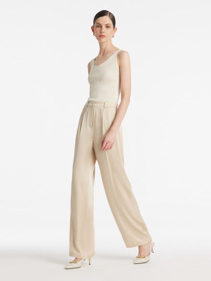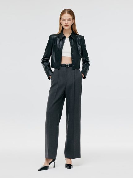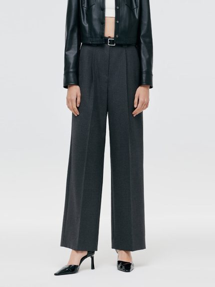 Worsted Wool Women Wide Leg Pants With Leather Belt