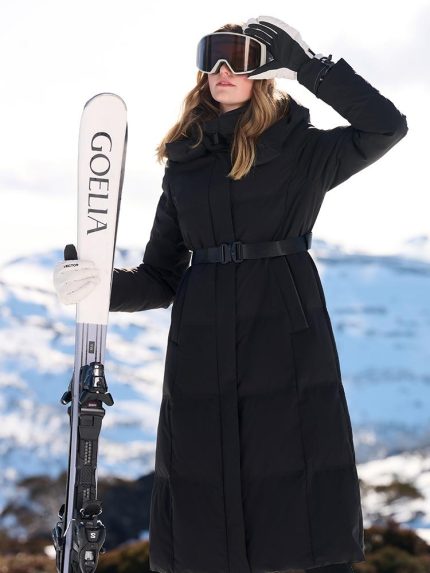 Rose Gold Unisex Hooded Long Goose Down Coat and A-Line Women Pleated Skirt With Belt