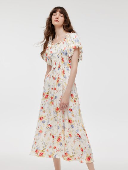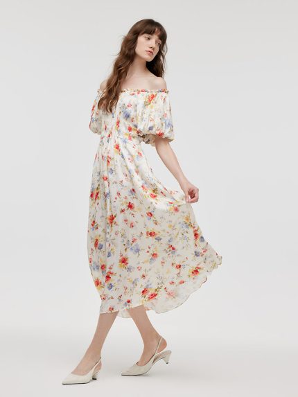 8.5 Momme Mulberry Silk Floral Women Qipao Midi Dress