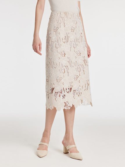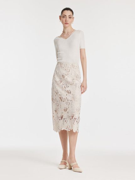 Lace Floral-Shaped Openwork Slit Women Half Skirt