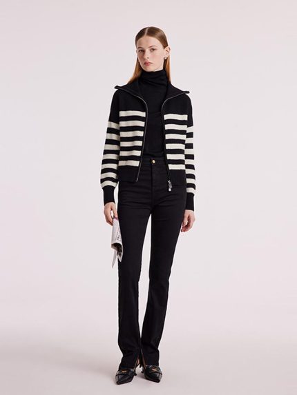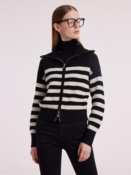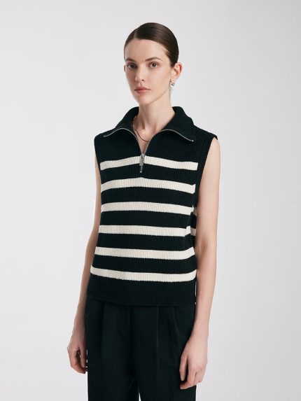 Thermostatic Wool Loose Striped Button-Shoulder Sweater