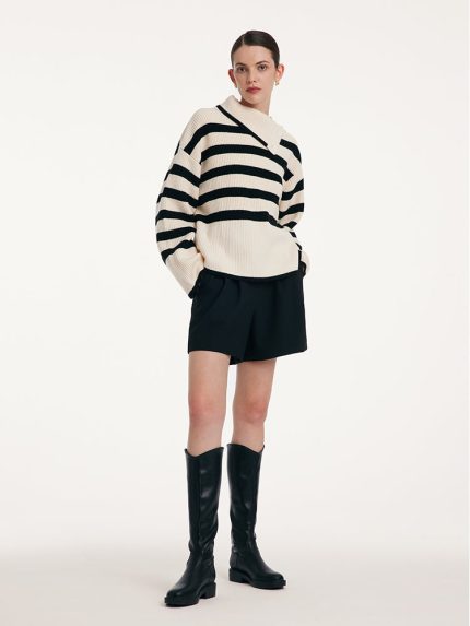 Thermostatic Wool Loose Striped Button-Shoulder Sweater
